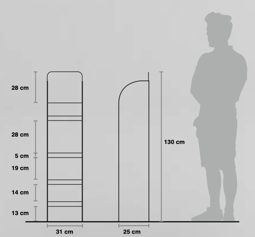 Dimensiones totales: 31x25x130 cmCarga por bandeja: 5.5 kgCarga global: 22 kgArea por bandeja: 31×25 cmMaterial: Carton 5.5mm